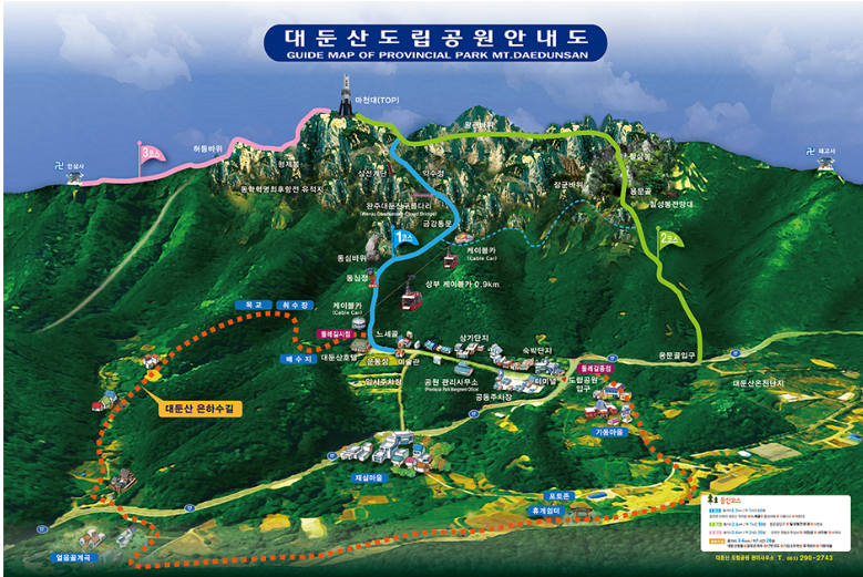 - 자연보호 수칙: 지정 탐방로 이용, 쓰레기 되가져오기, 케이블카 대기 질서 준수
